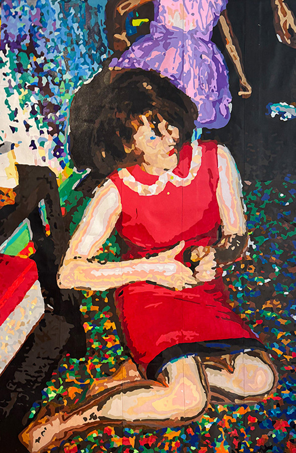 The work consists of 25 individually painted, unstretched canvas panels joined to form a single painting.